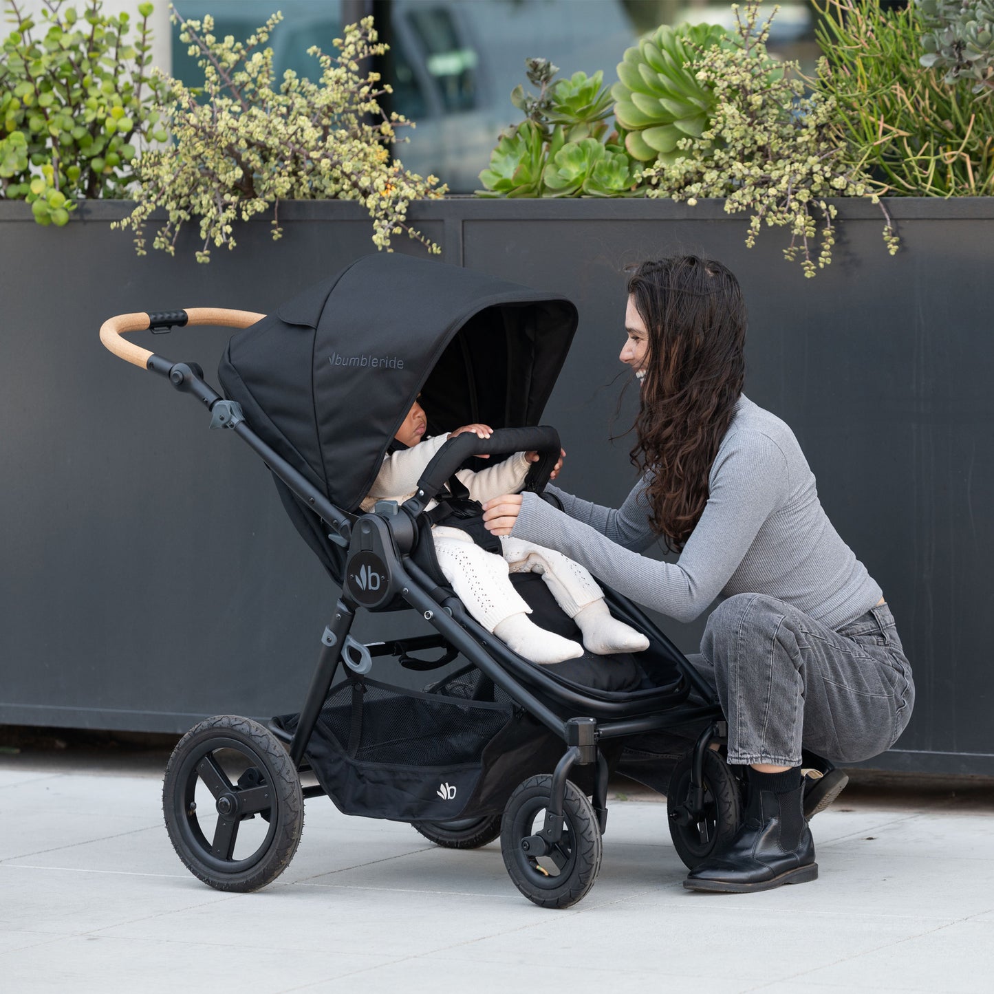The Bumbleride Era is our reversible seat stroller ready to use at birth with no attachments. Featuring an infant-safe, lay flat seat that faces you until they’re ready to see the sights. Era has all-wheel suspension and air-filled tires with an easy, one-handed push on city streets or bumpy terrain. Its extra-long footwell gives your child room to grow and its small footprint makes maneuvering tight spaces stress-free. Responsibly made and manufactured (see eco and health checklist).