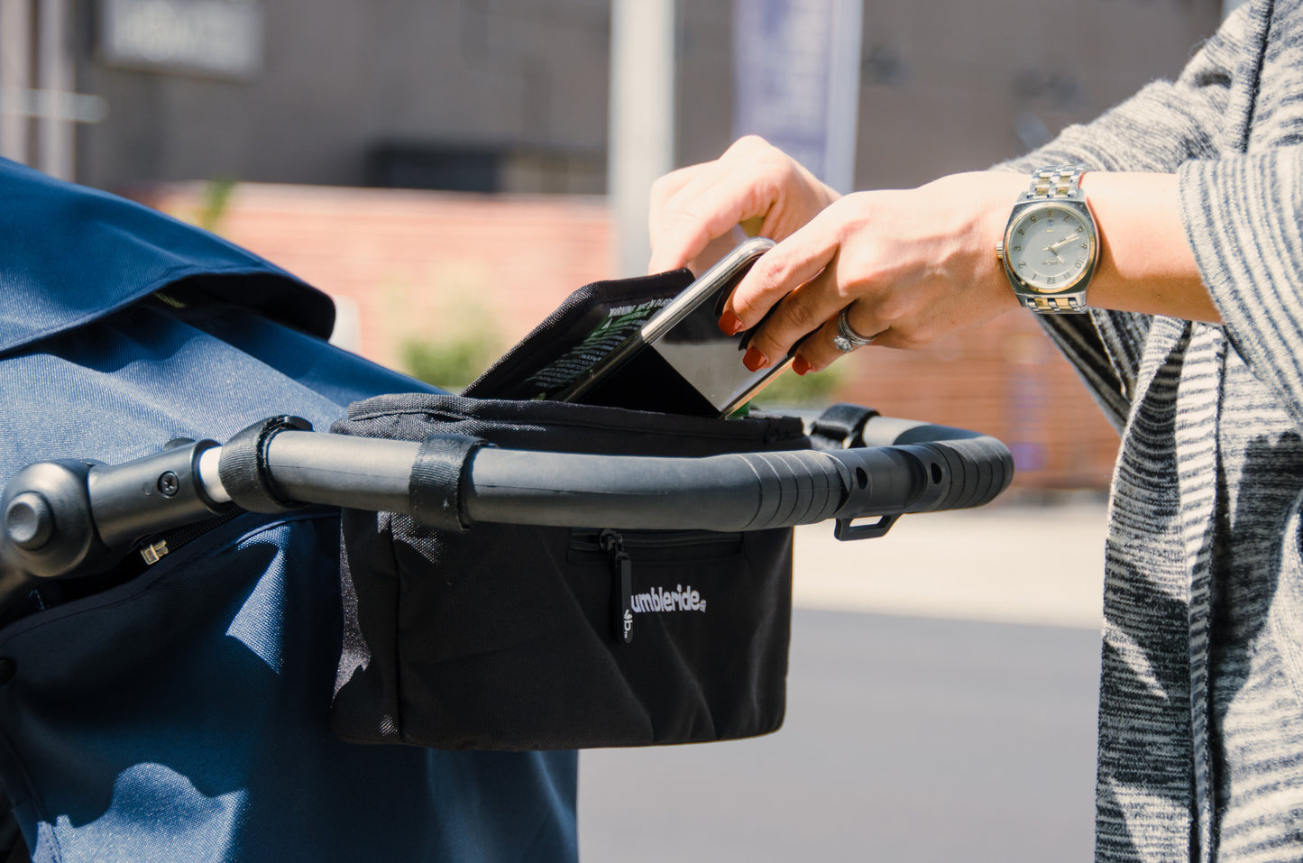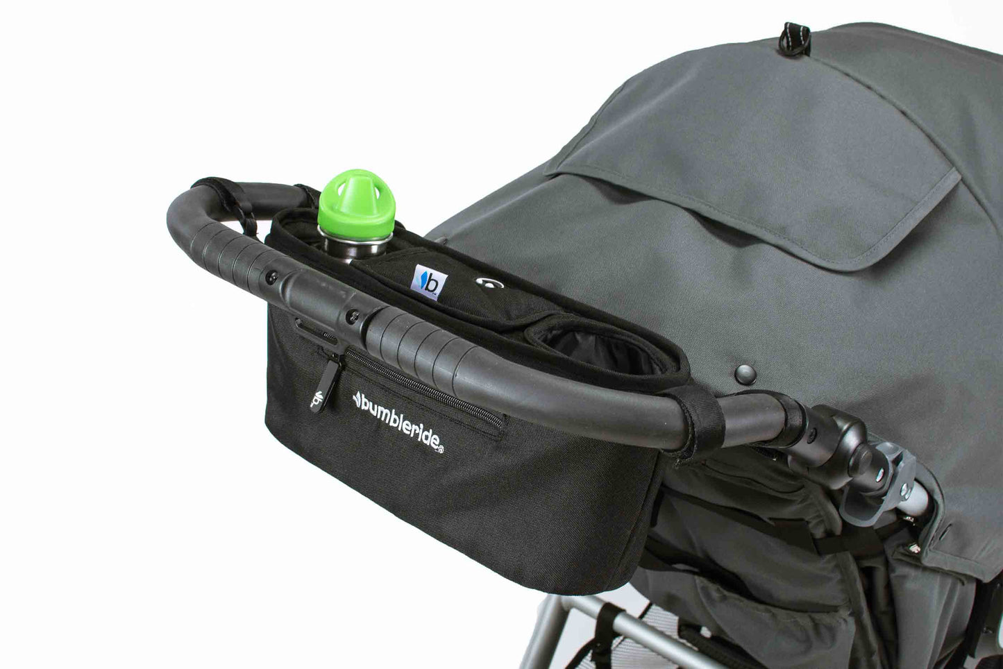 The Bumbleride Parent Pack is a parent console that attaches directly to the handle of your Bumbleride to add more storage. This stroller parent console attaches with 4 Velcro straps for any handlebar angle. Constructed using durable fabric, Parent Pack is easily removed and machine washed. It also folds down with your Bumbleride stroller. It features two adult-sized cup holders and a secure magnetic pouch for your keys, phone and other valuables. Two stroller parent consoles can be attached to Indie Twin at the same time.